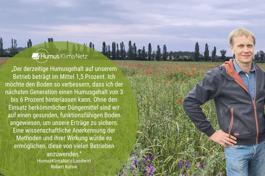 Betriebsleiter Robert Künne ist stets offen für neue Ansätze. Neben dem Anbau von Sonderkulturen wie Hanf wurde vor einigen Jahren auch ein Agroforstsystem etabliert. Darüber hinaus werden auf dem Hof Komposttee sowie effektive Mikroorganisem hergestellt und auf den Flächen ausgebracht.