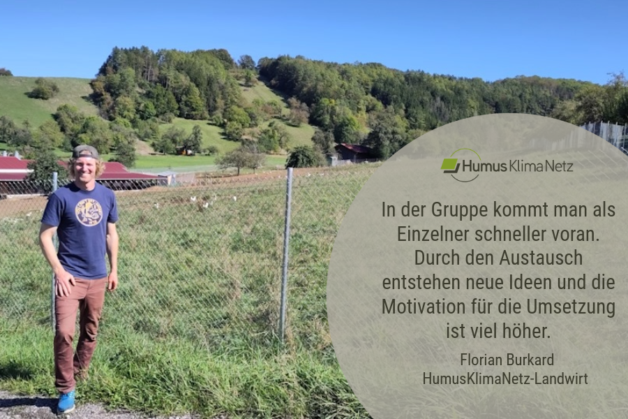 Der Lindenhof von Florian Burkard liegt in der Region Hochrhein, am südöstlichen Rand des Schwarzwalds am Flusslauf der Wutach. Neben dem Ackerbau auf knapp 80 Hektar Ackerland ist der Betrieb sehr vielseitig aufgestellt. 125 Schafe beweiden einen Großteil der 55 Hektar Grünland und zukünftig auch die Zwischenfrüchte und Untersaaten. Daneben hält der Betrieb 2000 Legehennen. Seit knapp zwei Jahren ist nun auch eine Kurzumtriebsplantage auf 0,3 Hektar im Hühnerauslauf dazugekommen, die von den Hühnern sehr gut angenommen wird. Eine kleine Direktvermarktung mit eigenen und regionalen Produkten in Form von Automaten, die im Zentrum des Ortes stehen, rundet das Bild ab. Um die Landwirtschaft erlebbar zu machen, bietet der Betrieb auf seinem „Lernort Bauernhof“ verschiedene Angebote an. Eine feste Partnerschaft mit der Gemeinschaftsschule Wutöschingen hat sich gut etabliert. In wiederkehrendem Rhythmus kommen Schulklassen zu den Themen Pflanzenbau, Tierhaltung, Biodiversität und Imkerei auf den Hof und lernen die Thematik durch Erleben kennen. Seit diesem Jahr ist der Betrieb Partner des Naturpark Südschwarzwald, in dessen Konzept er wegen der Bildungskooperation und Beweidung des Grünlandes mit Schafen sehr gut passt. Um Ackerfutter und Grünland besser verwerten zu können und dadurch wichtige Nährstoffe auf dem Betrieb zu halten, werden im Winter Pensionsrinder aufgenommen und im alten Milchviehstall untergebracht.
